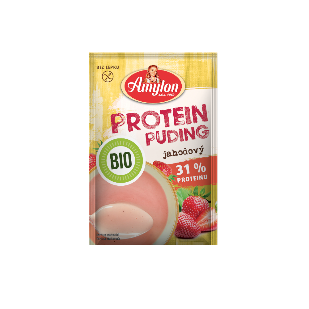 BUDYŃ PROTEINOWY TRUSKAWKOWY BEZ DODATKU CUKRU BEZGLUTENOWY BIO 45 g – AMYLON